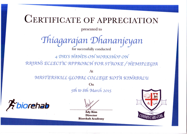 - TWO DAYS HANDS ON WORKSHOP (Module - 1) ON OCTOBER 2012 @ COLLEGE OF PHYSIOTHERAPY,VINAYAGA MISSIONS UNIVERSITY,SALEM.